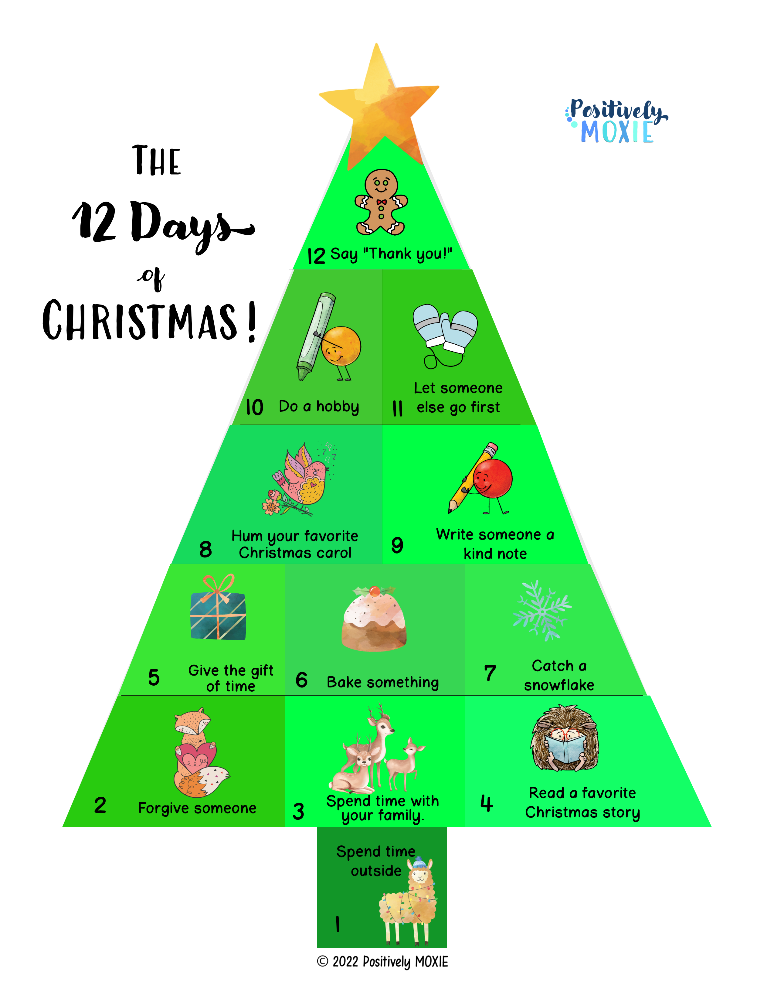 One of the best parts of holidays is the anticipation leading up to them. The 12 Days of Christmas activities will help you and your family focus on meaningful activities that will bring you joy and well-being. All 12 of these activities are not just simple and fun, but also proven to strength feelings of well-being and connectedness.